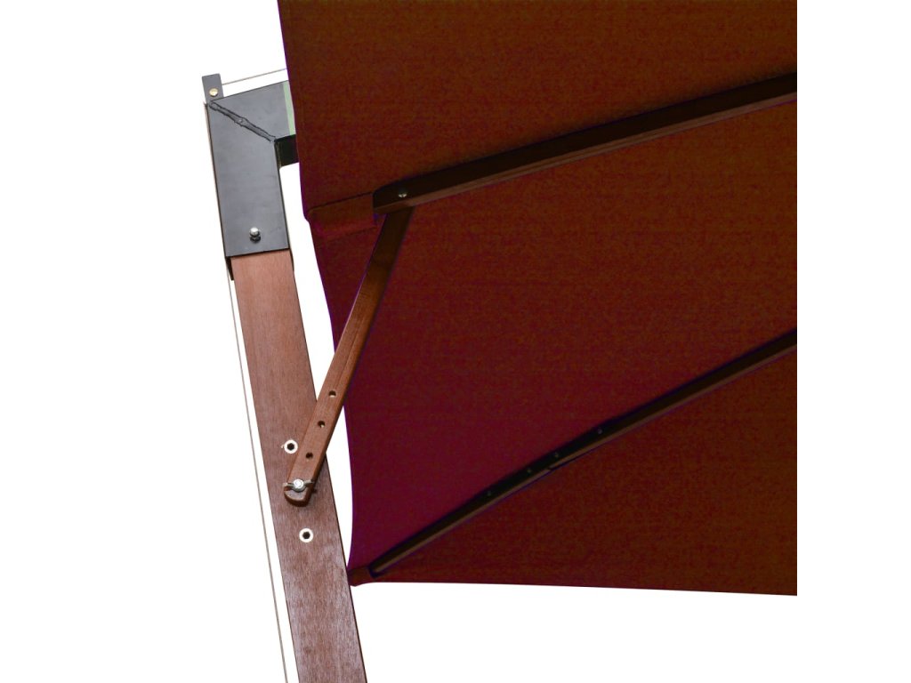 Kryt slnečníka je vyrobený z UV odolnej a stálofarebnej polyesterovej tkaniny a poskytuje vám optimálnu ochranu pred slnkom. Tyč z masívneho jedľového dreva, spolu s 8 pevnými bambusovými rebrami a priečnou základňou zabezpečujú veľkú stabilitu. Strieška voľne visí z tyče, takže tyč nebude prekážať v priestore pod slnečníkom.