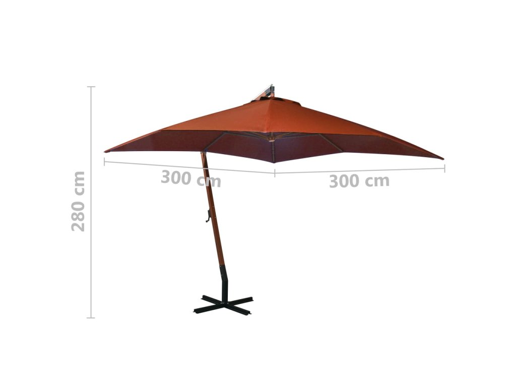 Tento pôsobivý drevený závesný záhradný slnečník predstavuje dokonalý spôsob, ako si vytvoriť príjemné miesto v tieni, a poskytne vám ochranu pred škodlivými slnečnými UV lúčmi. Poslúži ako príjemné miesto na terase, na verande či v záhrade alebo iných vonkajších priestoroch.