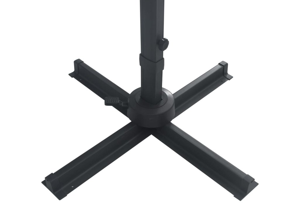 Slnečník je vyrobený z polyesteru, ktorý nevybledne a je odolný voči UV žiareniu, vďaka čomu vám poskytne optimálnu ochranu pred slnkom a ľahko sa čistí. Je vybavený 24 solárnymi LED diódami, ktoré automaticky osvetlia vaše vonkajšie priestory a po zotmení vytvoria vo vašej záhrade príjemnú a romantickú atmosféru. Dodáva sa s pevným podstavcom v tvare kríža pre lepšiu stabilitu. Náš záhradný slnečník sa dá jednoducho otvárať a zatvárať - stačí len otočiť kľuku na tyči. Sklon striešky môžete nastaviť potiahnutím rúčky nahor a nadol. Stredová tyč sa okrem toho dá otáčať v rozsahu 360 stupňov pomocou pedála. Pevná hliníková tyč s práškovou povrchovou úpravou spolu s 8 trvácnymi rebrami zabezpečujú výbornú stabilitu a dlhú životnosť slnečníka. Položka sa jednoducho montuje.