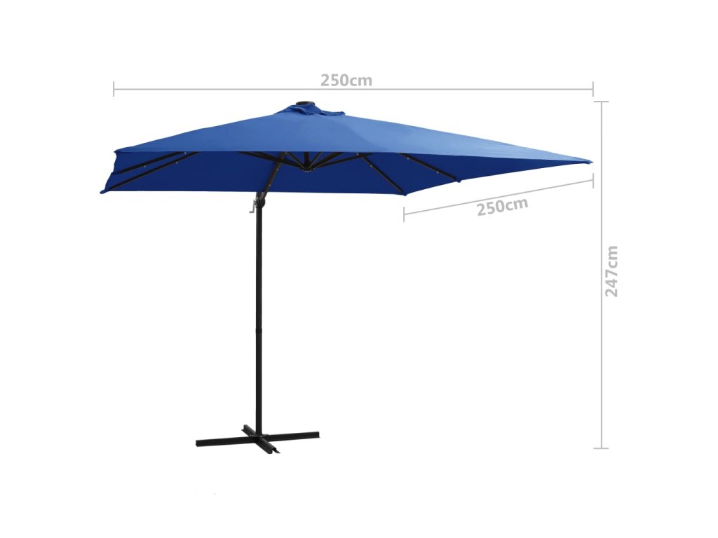 Tento elegantný závesný slnečník s LED svetlami predstavuje dokonalý spôsob, ako si vytvoriť príjemné miesto v tieni, a poskytne vám ochranu pred škodlivými slnečnými UV lúčmi.