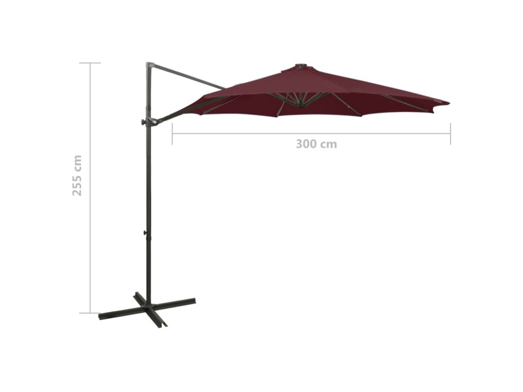 Tento elegantný závesný záhradný slnečník s LED osvetlením predstavuje skvelý spôsob, ako si vytvoriť príjemné miesto v tieni, a poskytne vám ochranu pred škodlivými slnečnými UV lúčmi. LED diódy po zotmení vytvoria príjemné svetlo, ktoré presvetlí vaše vonkajšie priestory.