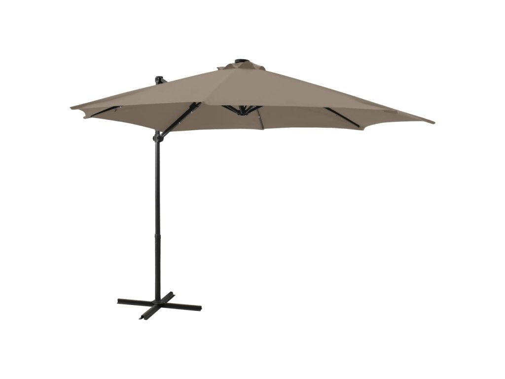 Tento elegantný závesný záhradný slnečník s LED osvetlením predstavuje skvelý spôsob, ako si vytvoriť príjemné miesto v tieni, a poskytne vám ochranu pred škodlivými slnečnými UV lúčmi. LED diódy po zotmení vytvoria príjemné svetlo, ktoré presvetlí vaše vonkajšie priestory.