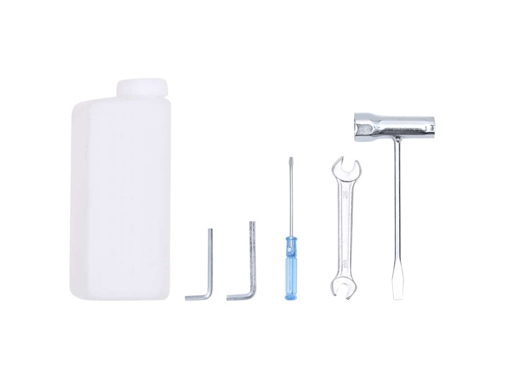 - Súčasťou balenia sú 3 železné vrtáky, 1 miešacia nádoba, 1 vŕtacia súprava a 1 sada nástrojov