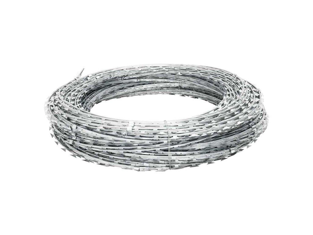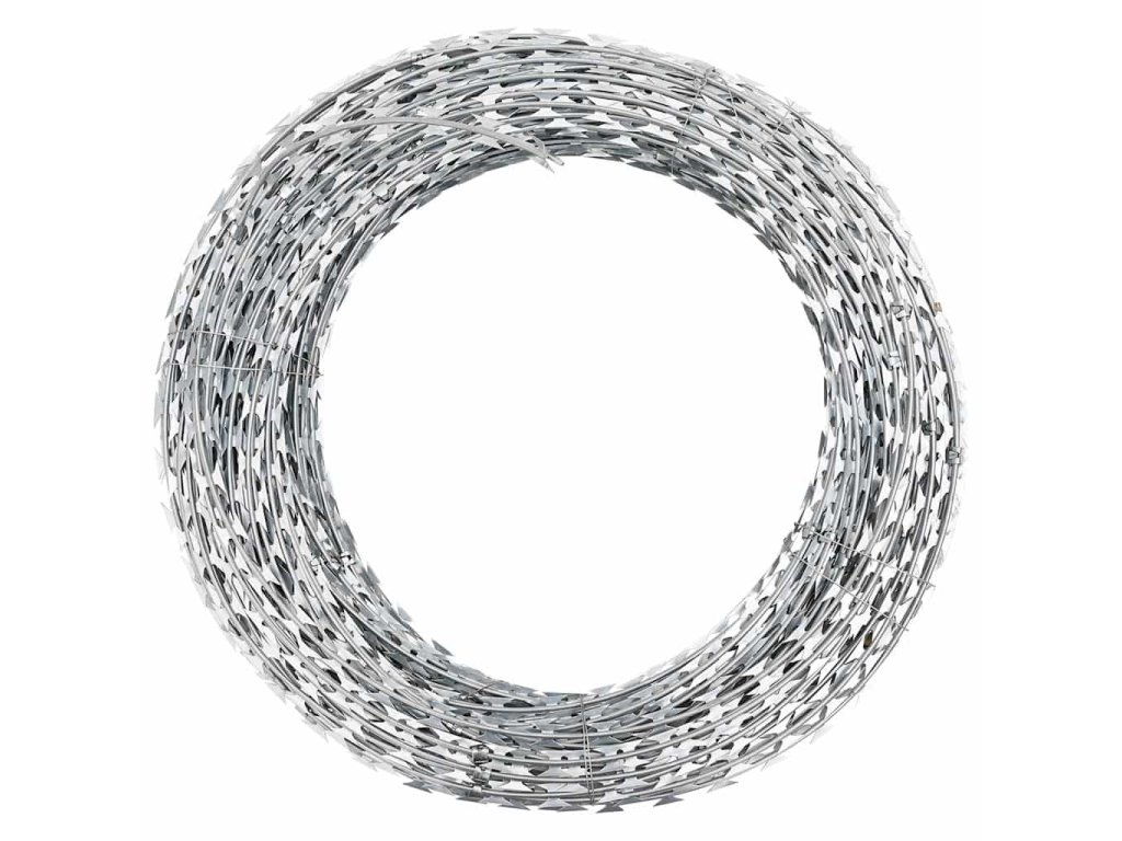 Žiletkový drôt je vyrobený z vysokokvalitnej pozinkovanej ocele, vďaka čomu je odolný voči vode a poveternostným vplyvom a je veľmi trvácny.