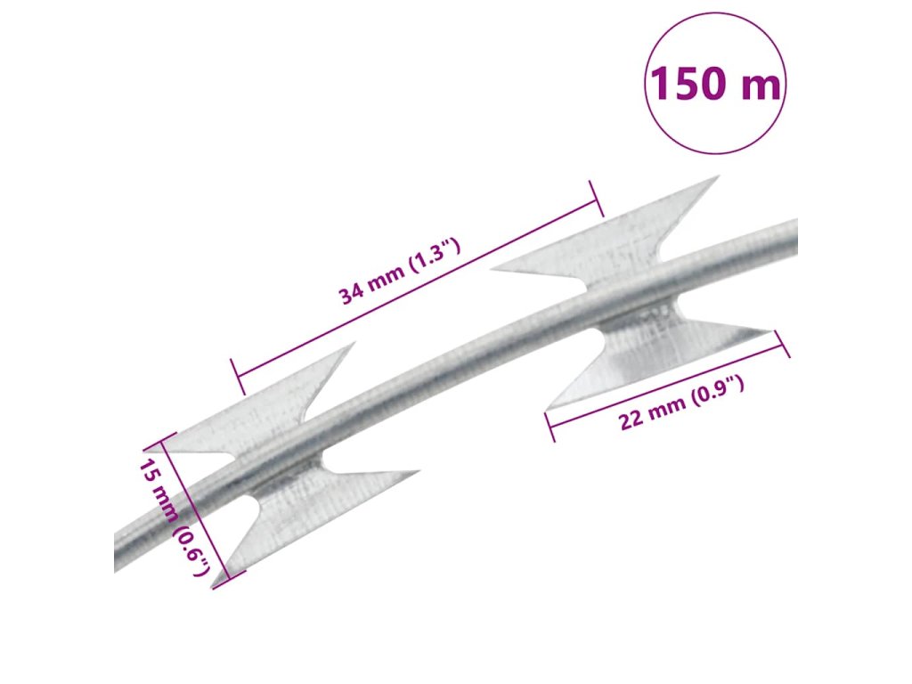 Robustný žiletkový drôt je už navinutý do špirály a na každom návine sa nachádzajú 3 svorky, čo mu dodáva tvar trubice so slučkami, ktoré sú príliš malé na to, aby cez ne preliezol človek. Vďaka tomu zabráni neželaným hosťom vojsť do vašej záhrady. Žiletkový drôt sa dá navinúť na hornú časť vášho záhradného plota pre väčšiu bezpečnosť.