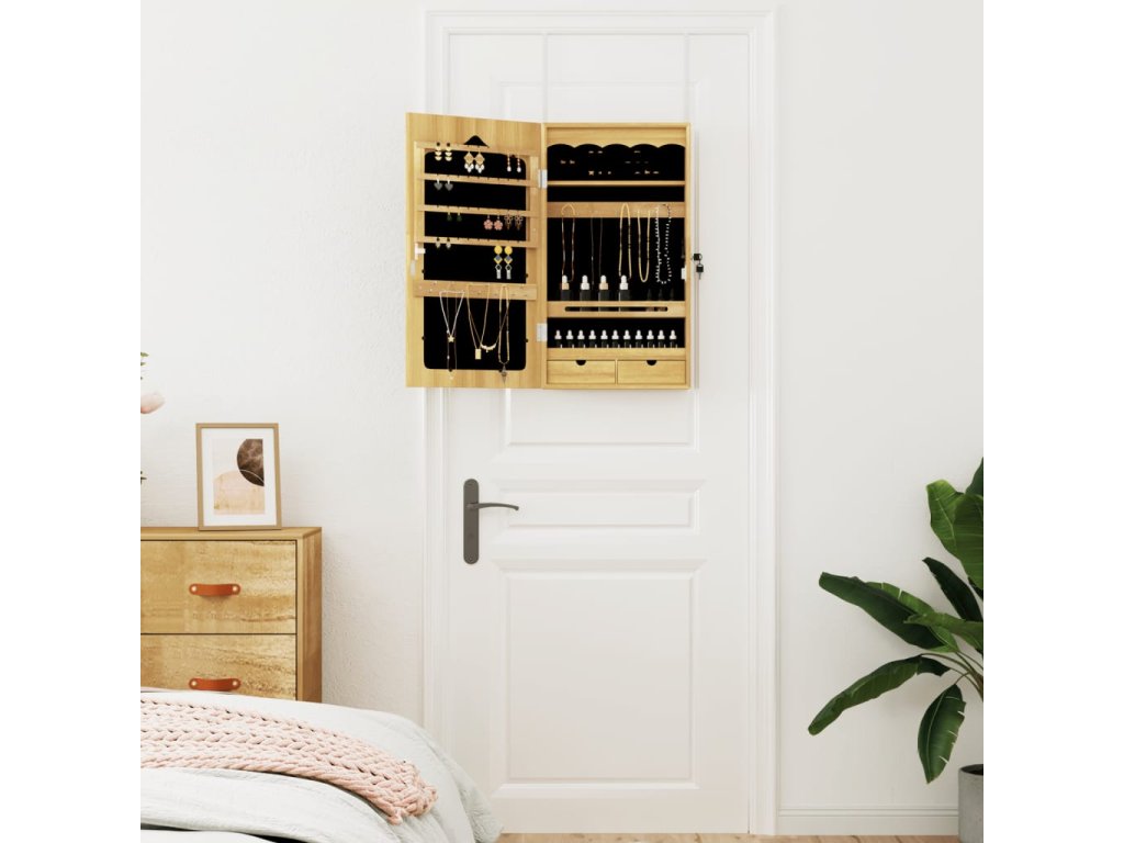 - Priestorovo úsporný dizajn: Zaveste zrkadlovú šperkovnicu na dvere pomocou priložených háčikov alebo ju pripevnite na stenu, aby ste ušetrili miesto na podlahe.