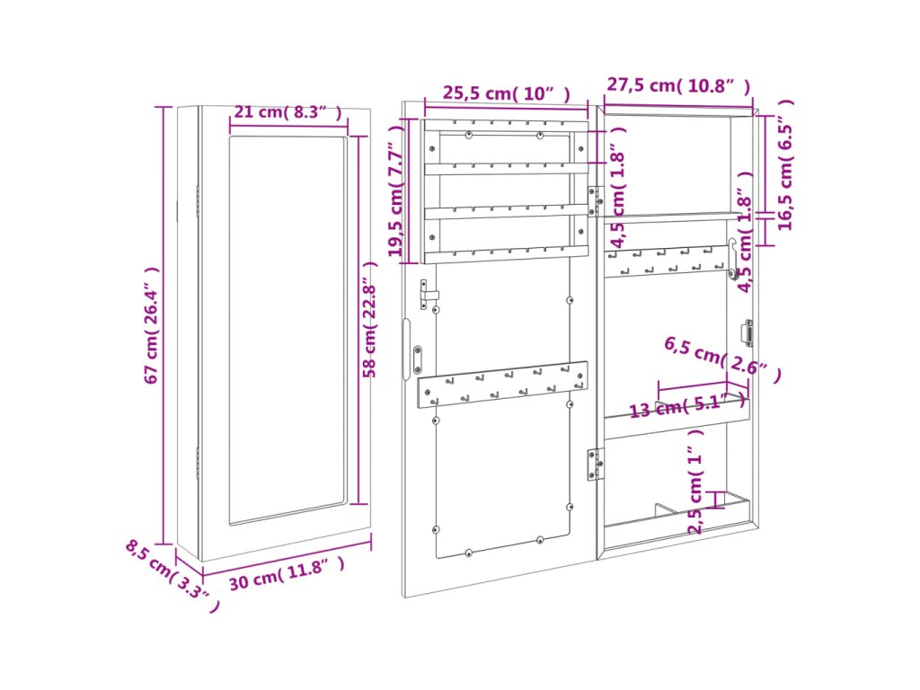 - Celkové rozmery: 30 x 8,5 x 67 cm (Š x H x V)