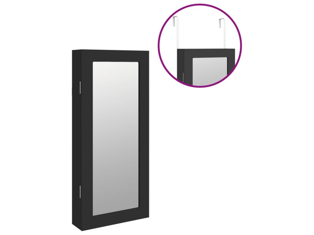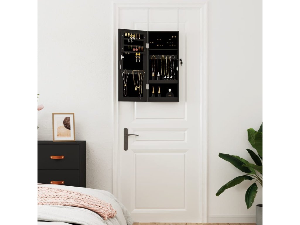 - Priestorovo úsporný dizajn: Zaveste zrkadlovú šperkovnicu na dvere pomocou priložených háčikov alebo ju pripevnite na stenu, aby ste ušetrili miesto na podlahe.