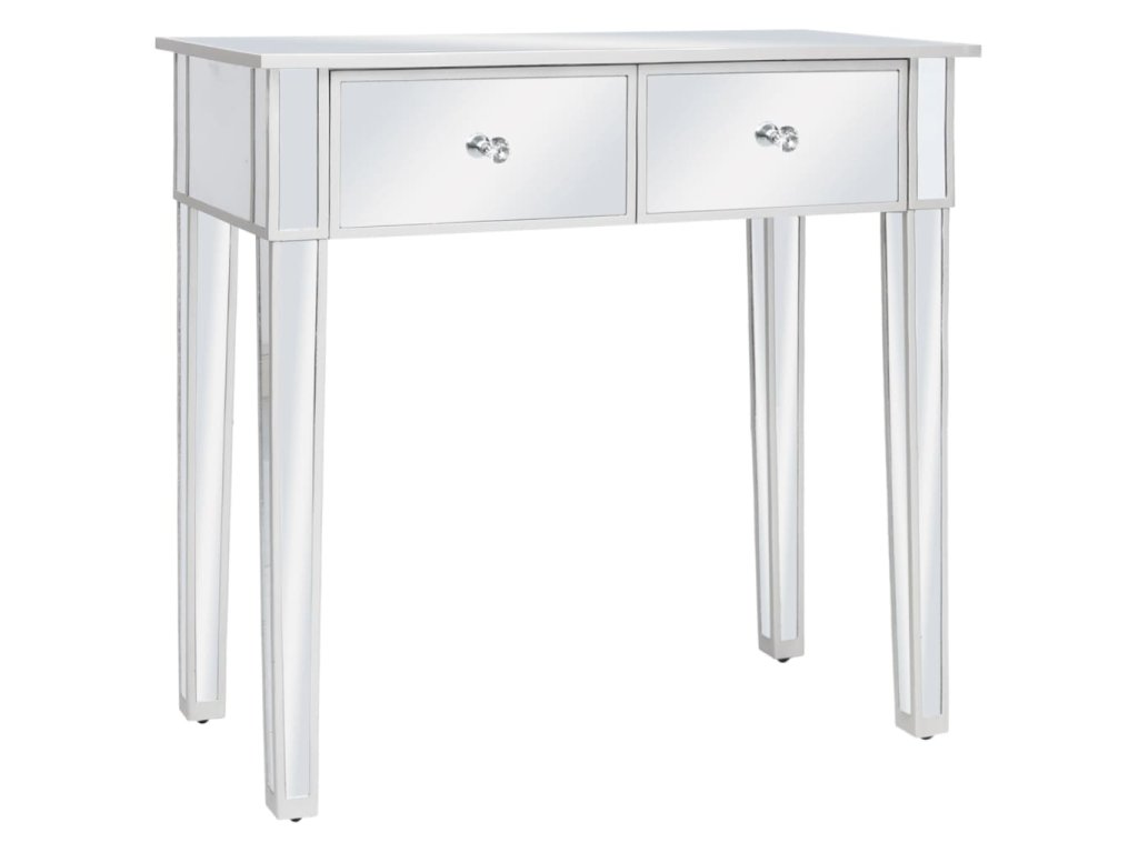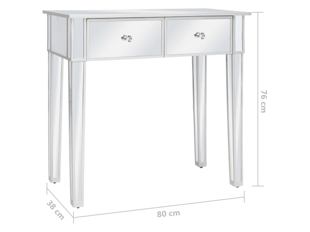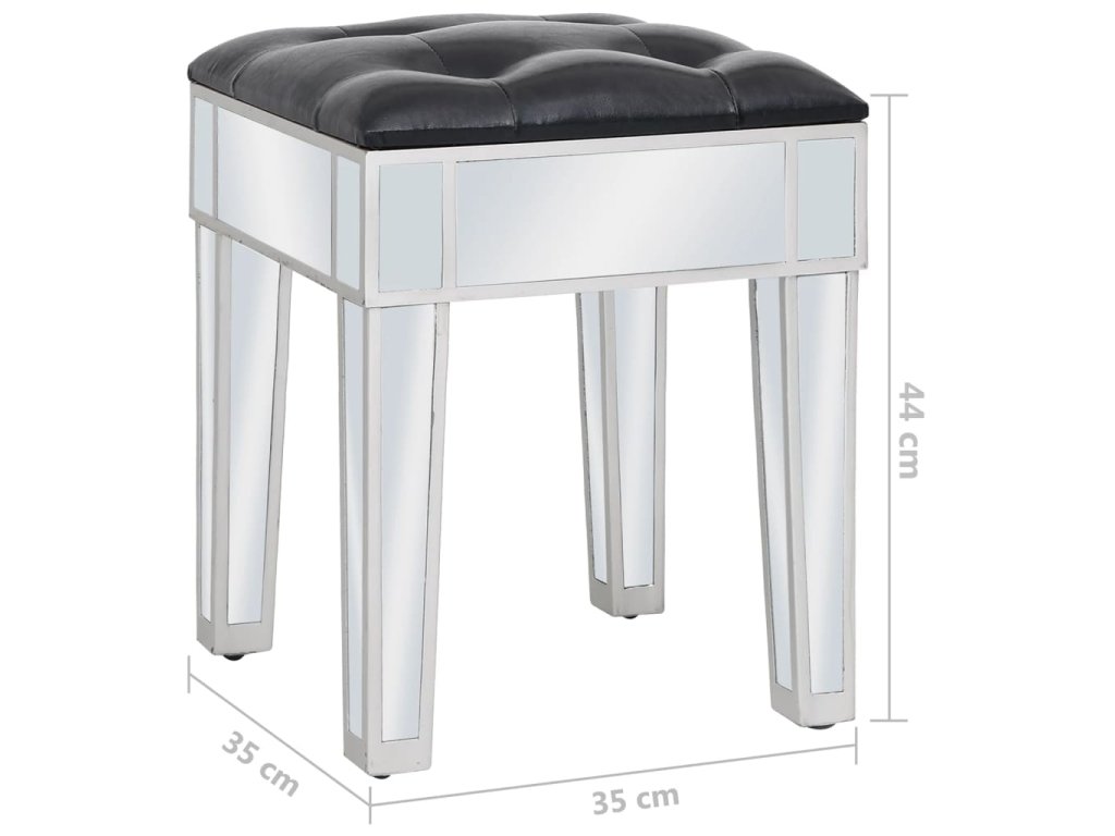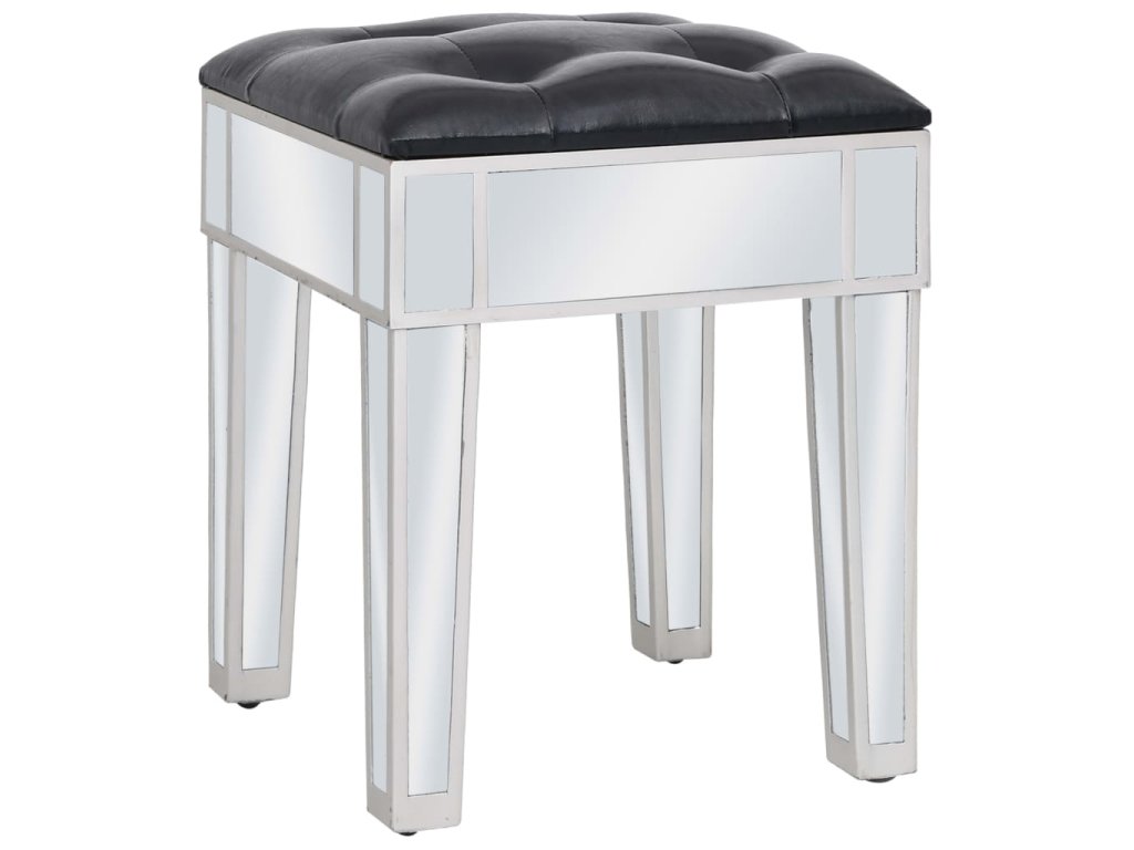 Tento stolík má zrkadlový povrch, vďaka ktorému okamžite skrášli interiér a priestor opticky zväčší. Úchytky s umelými kryštálmi dodávajú stolíku elegantný šmrnc a umožňujú jednoduché otváranie zásuviek. Sedadlo je čalúnené umelou kožou, ktorá mu dáva luxusný nádych a poskytuje maximálny komfort.