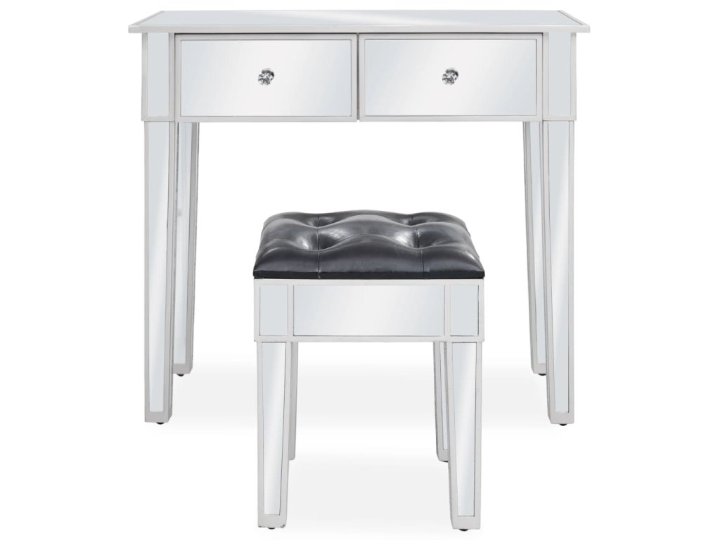 Tento toaletný stolík so stoličkou dodá do vášho interiéru elegantný nádych. Toaletný stolík je vyzdobený úhľadným zrkadlovým sklom a vyžaruje z neho sofistikovanosť.