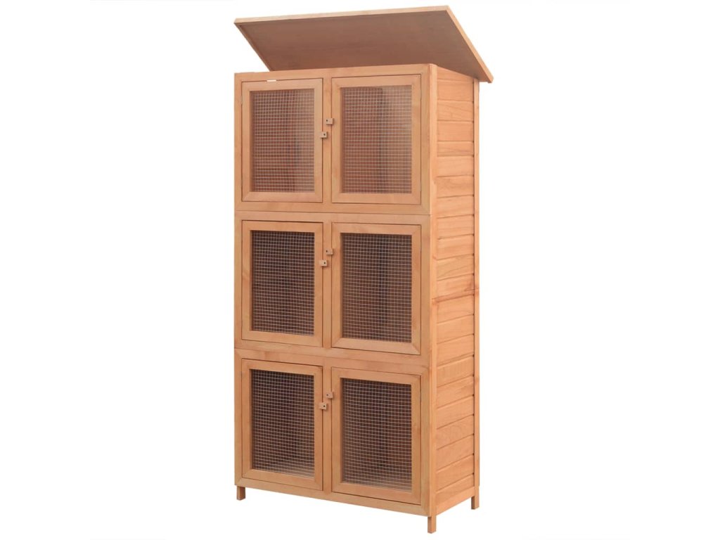Táto prémiová drevená zvieracia klietka poskytuje vhodné miesto na chovanie zajacov a iných menších domácich zvierat. Má kvalitný dizajn so železným drôteným pletivom, ktoré sa postará o to, aby nedochádzalo k nehodám a nežiaducemu správaniu a tiež vám umožní králiky kedykoľvek skontrolovať.