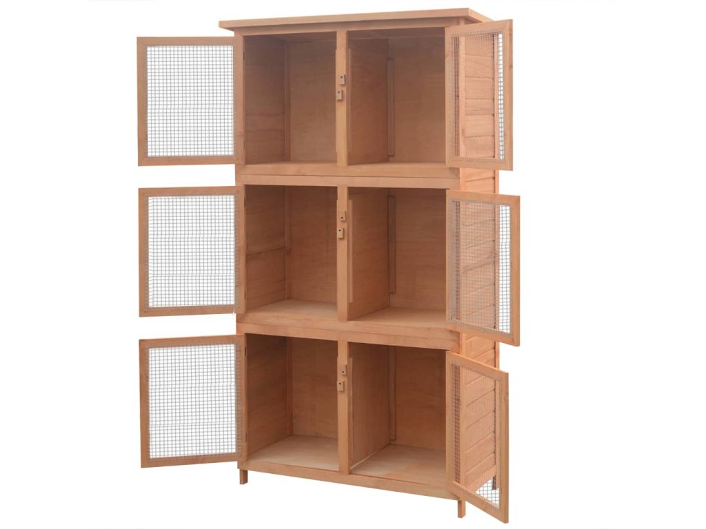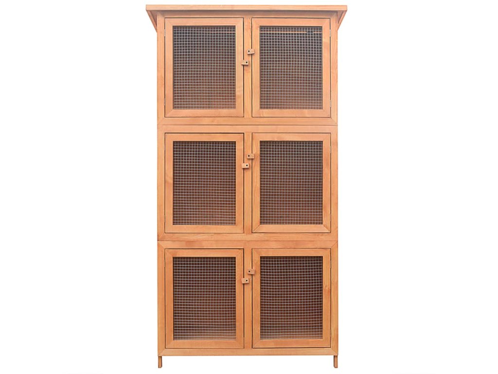 Klietka pozostáva zo šiestich samostatných kotercov, vďaka čomu sa ľahko čistí a udržiava. Dvierka s drôteným pletivom zabezpečujú lepšie prúdenie vzduchu v klietke. Klietka je vyrobená z jedľového dreva prvotriednej kvality, ktoré bolo ošetrené náterom, aby odolávalo poveternostným vplyvom v exteriéri. Dvierka sa ľahko otvárajú, a tak umožňujú bezproblémový prístup k zvieratám.