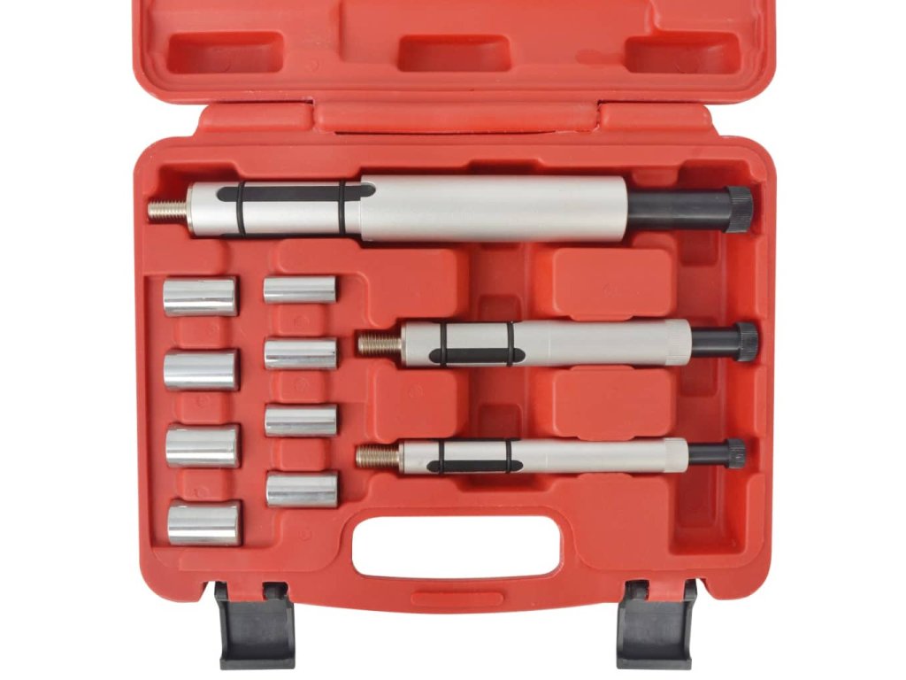 Sada nástrojov je vyrobená z kvalitných materiálov, vďaka čomu je veľmi odolná. Sada obsahuje 8 oceľových metrických adaptérov a 3 vodiace tŕne. Sada sa dodáva v puzdre pre jednoduchú prepravu a skladovanie.