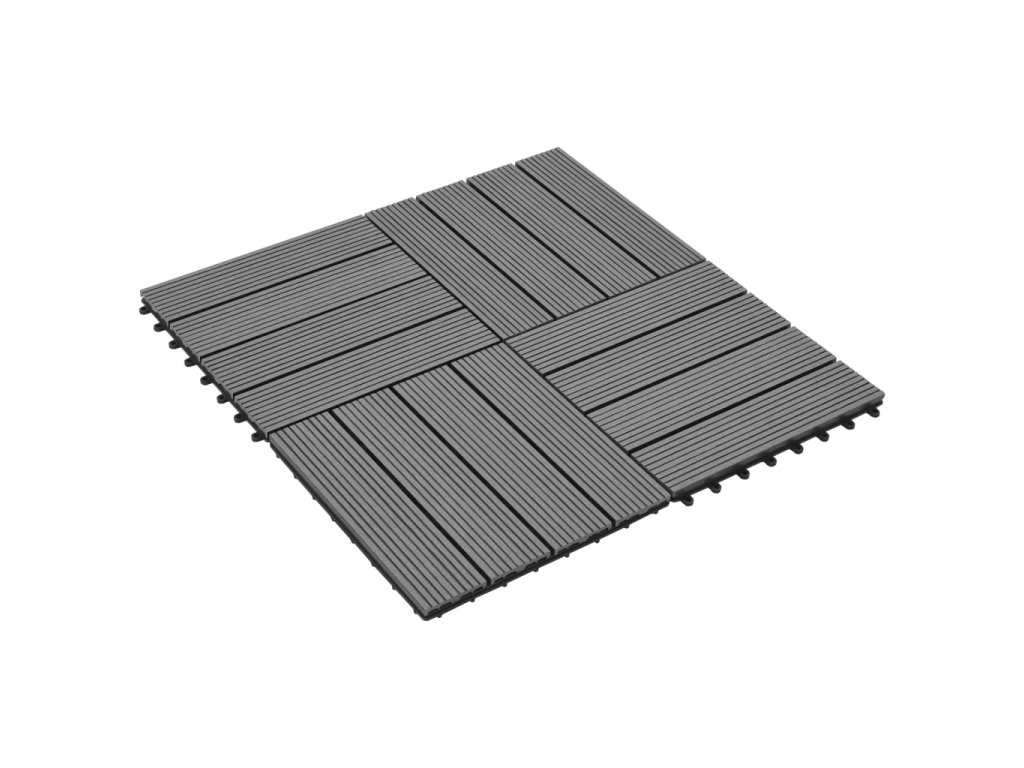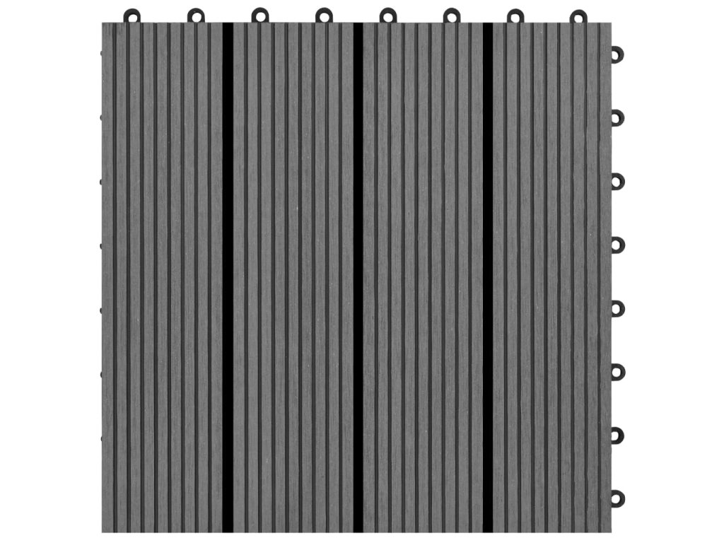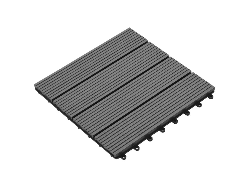Táto sada WPC dlaždíc, každá 30 x 30 cm, je dodávaná s 11 ks a celková veľkosť je 1m štvorcový. Je ideálna pre terasy, balkóny, kúpeľne, bazény alebo kúpele.