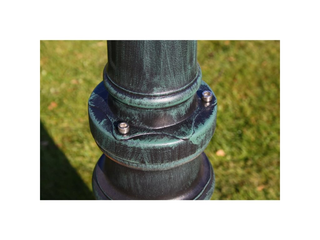 Toto čierne / tmavo zelené záhradné svietidlo je vyrobené z hliníka a je 215 cm vysoké. Je vhodné pre lampy s maximálnym výkonom 60 W. Tieto 3 lampy nielen pridajú príjemnú atmosféru vašej záhrade, ale urobia vaše prechádzky po záhrade alebo príjazdovej ceste oveľa bezpečnejšie v noci.