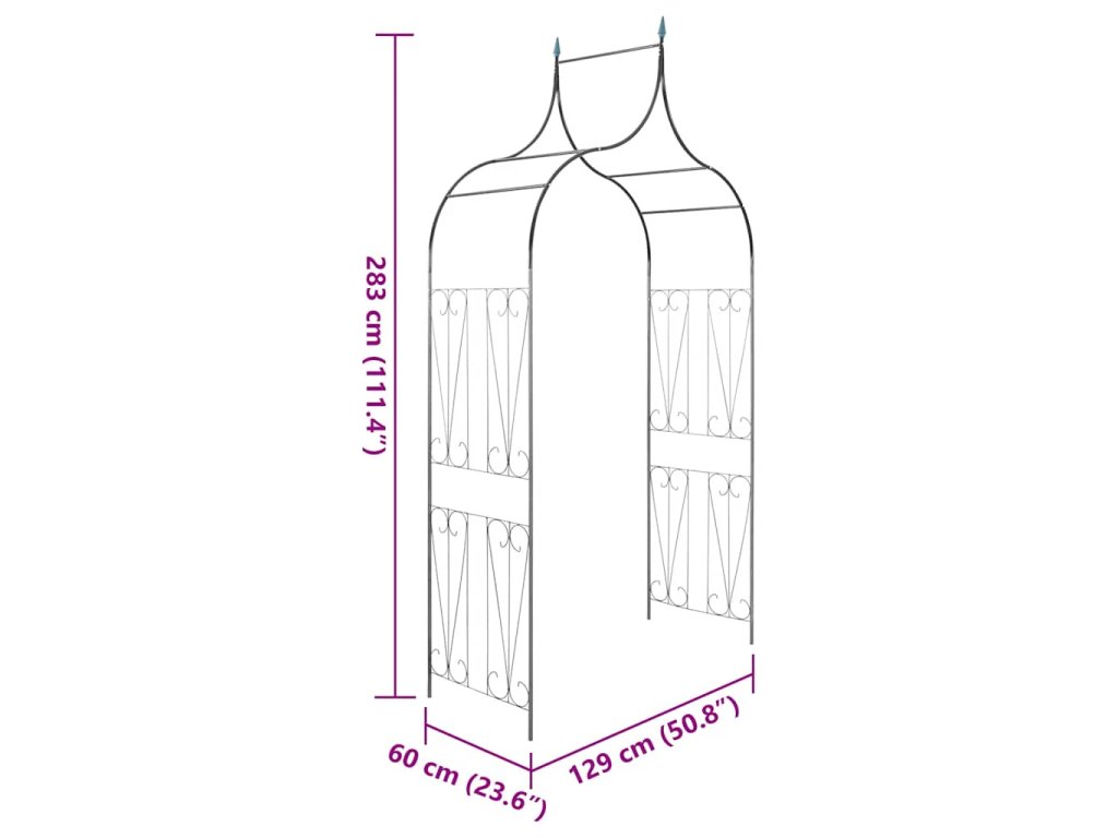 Záhradný oblúk je odolný voči poveternostným vplyvom a je vyrobený z trvácneho železa, vďaka čomu je dostatočne pevný a udrží aj tie najhustejšie popínavé rastliny. Záhradná pergola je široká 129 cm a vysoká 283 cm a sami si môžete vybrať, ako hlboko chcete oblúk zapustiť do zeme, aby mal čo najlepšiu stabilitu. Záhradný oblúk sa jednoducho inštaluje a montuje.