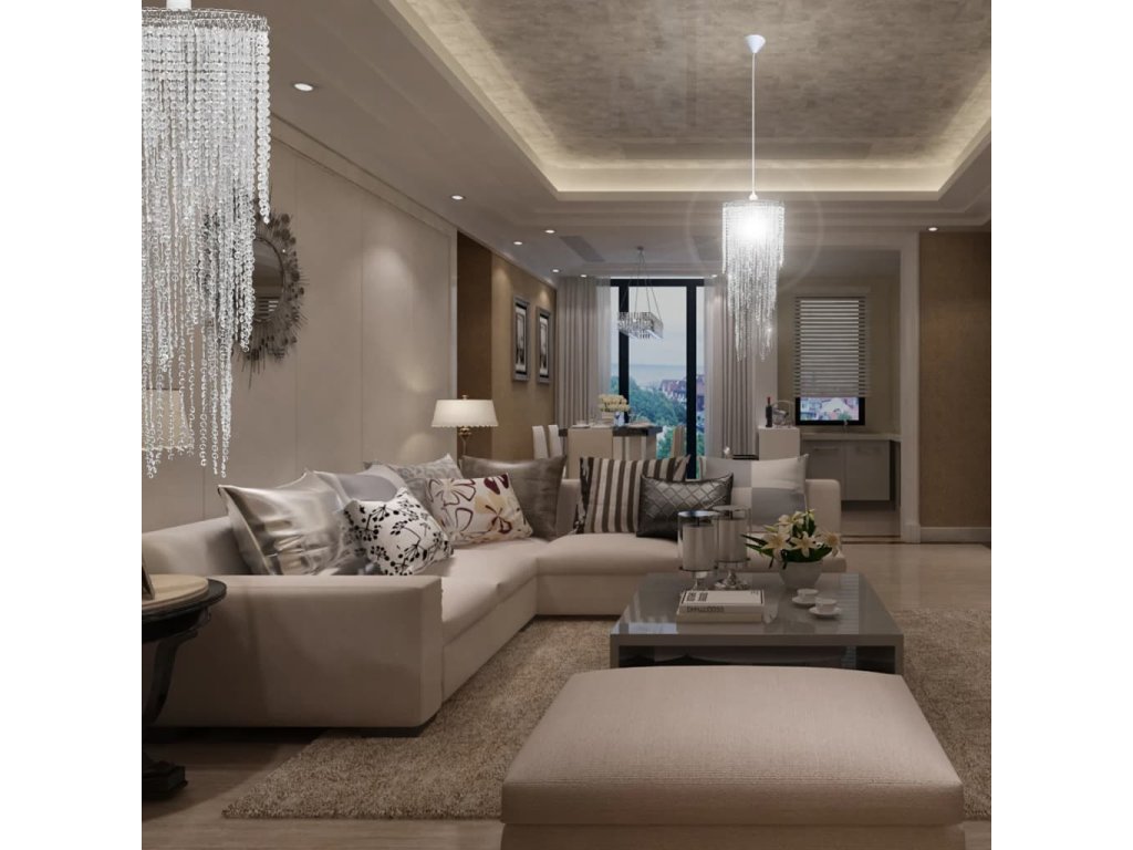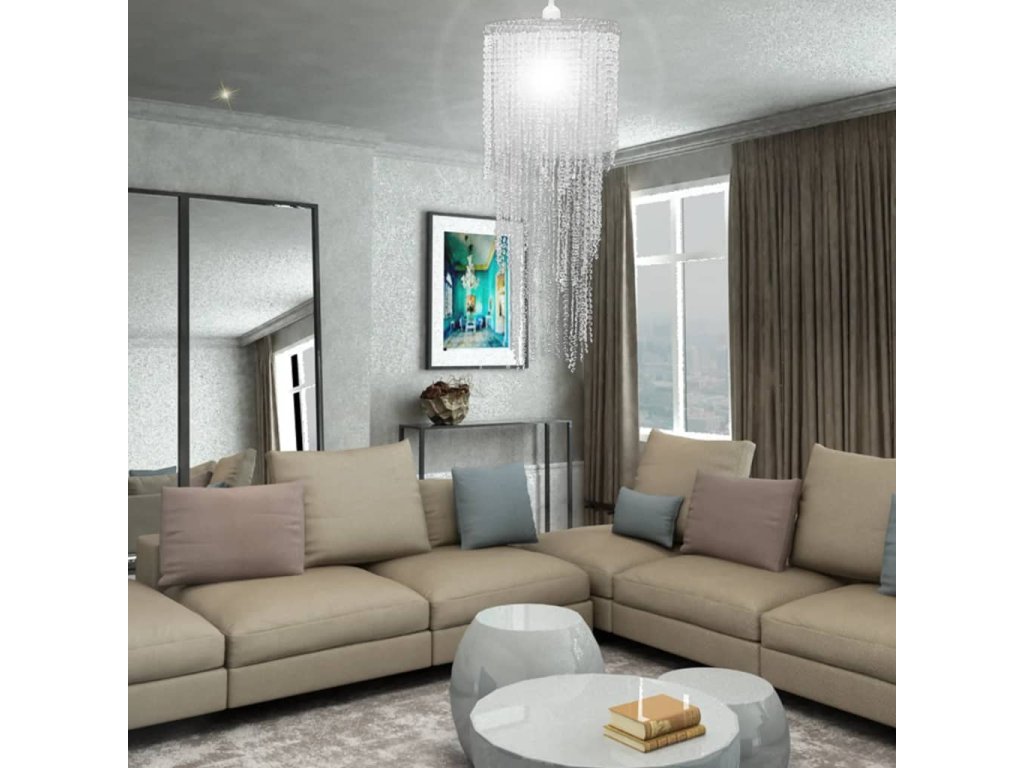 Vysokokvalitné koráliky majú jasný lesk, efektívne zachytávajú a odrážajú svetlo a vytvárajú nádhernú hru farieb celého spektra. Táto elegantná závesná lampa dodá vášmu interiéru nádych luxusu.
